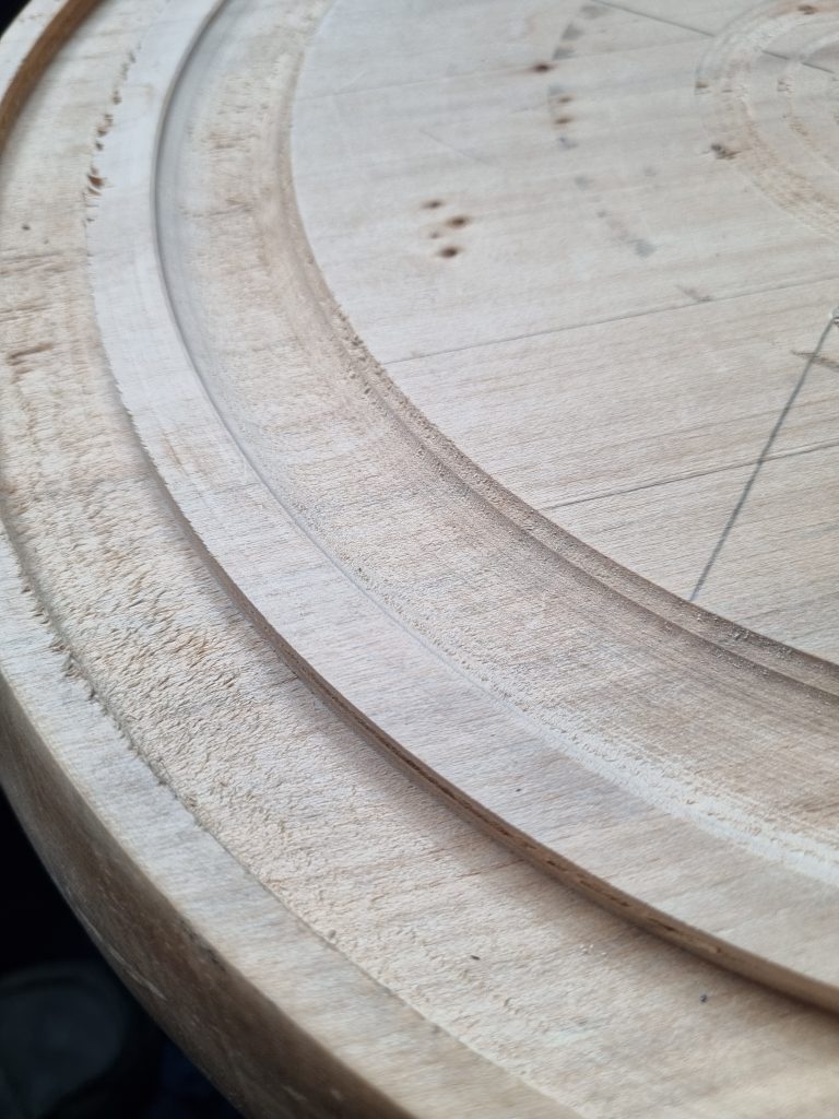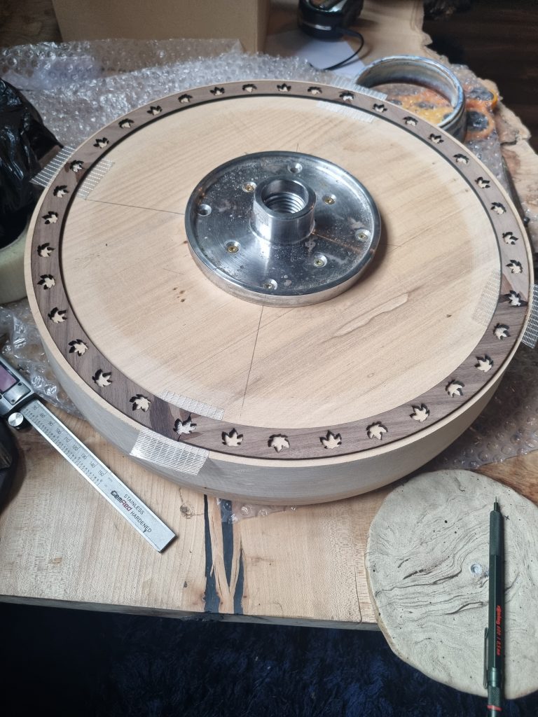 Pushed together and placed on the bowl blank. The size was checked and the position marked on the blank