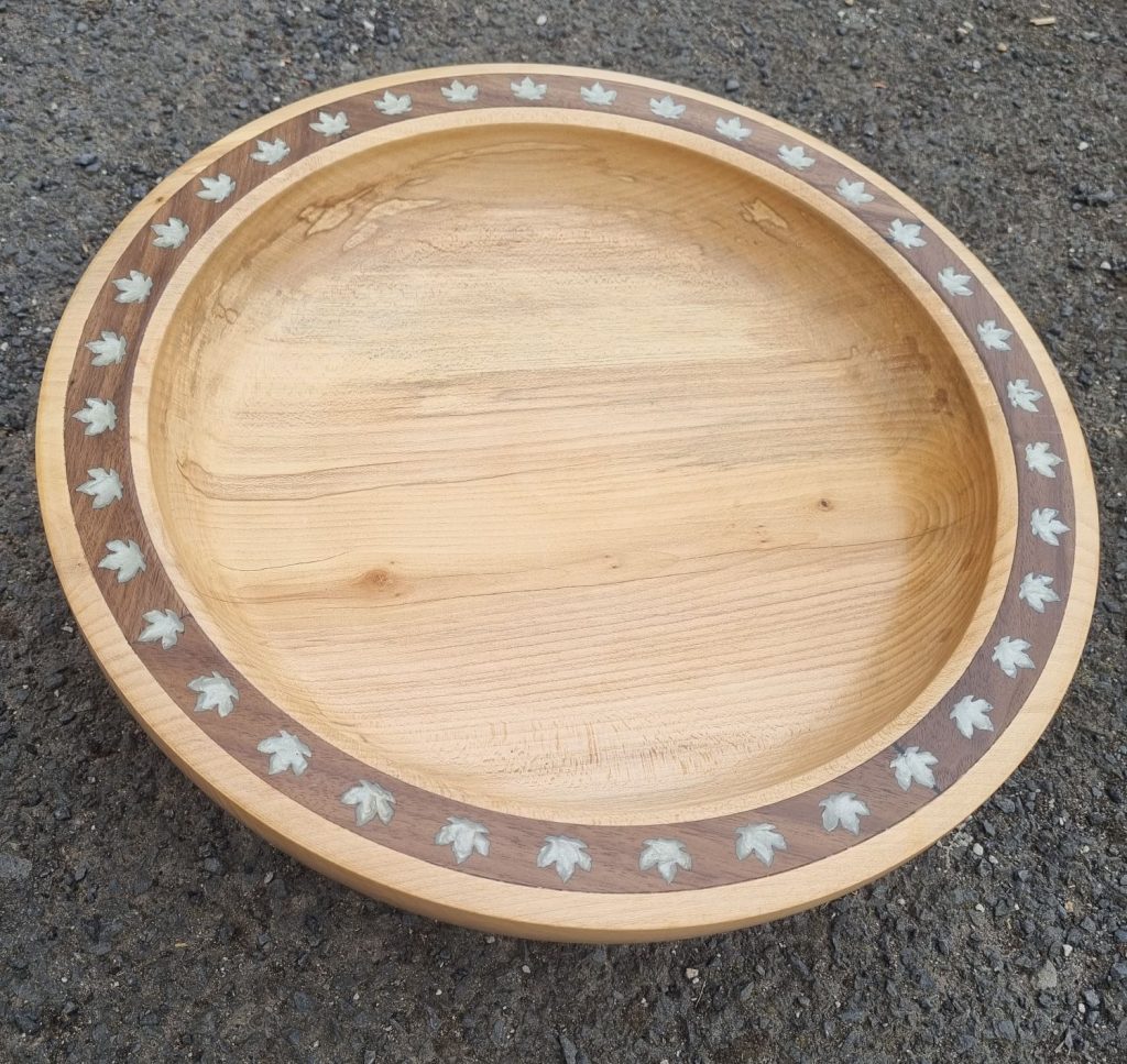 I drew two circles at the required diameters. I then trimmed them to produce a quarter of the circle. I drew a maple leaf and pasted into the circle